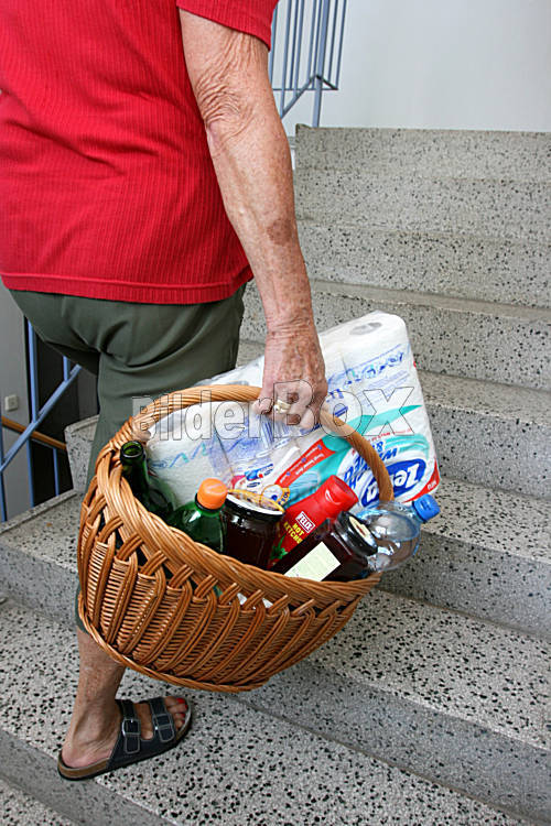 Beschreibung Seniorin mit schwerer Einkaufstasche [ (c) www.BilderBox.com, Erwin Wodicka, Siedlerzeile 3, A-4062 Thening, Tel. + 43 676 5103678.Verwendung nur gegen HONORAR, BELEG, URHEBERVERMERK nach AGBs auf...