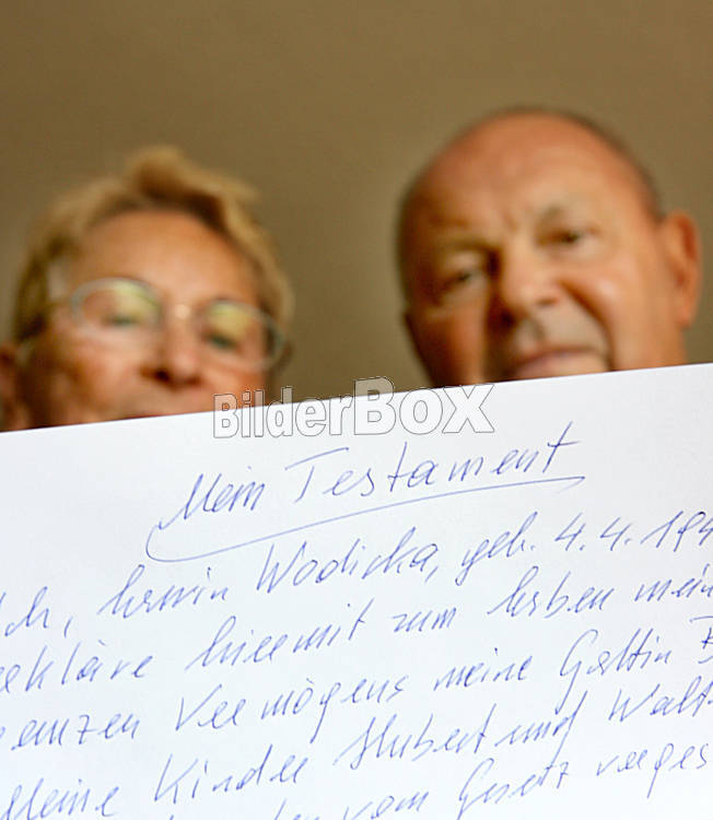 Beschreibung Seniorenpaar mit Testament [ (c) www.BilderBox.com, Erwin Wodicka, Siedlerzeile 3, A-4062 Thening, Tel. + 43 676 5103678.Verwendung nur gegen HONORAR, BELEG, URHEBERVERMERK nach AGBs auf...
