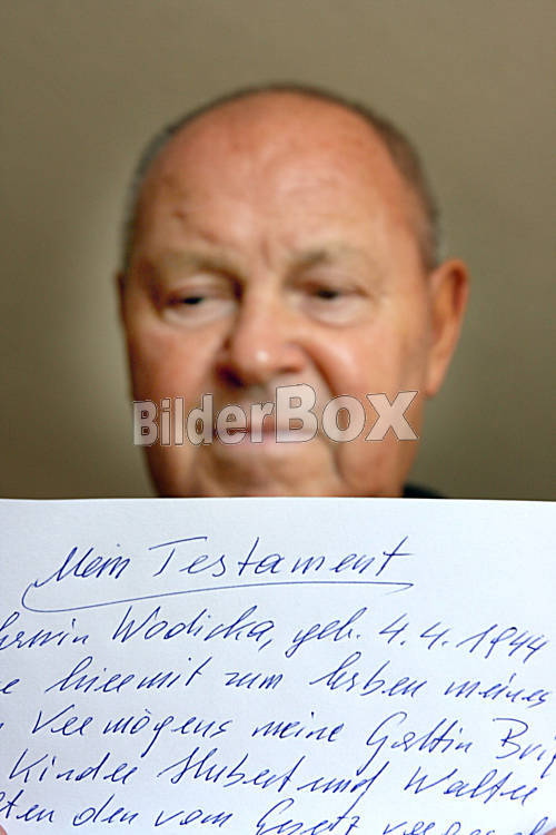 Beschreibung Mann mit Testament [ (c) www.BilderBox.com, Erwin Wodicka, Siedlerzeile 3, A-4062 Thening, Tel. + 43 676 5103678.Verwendung nur gegen HONORAR, BELEG, URHEBERVERMERK nach AGBs auf bilderbox.com],...