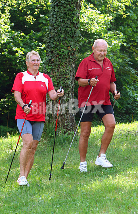 Beschreibung Senioren beim Nordic-Walken [ (c) www.BilderBox.com, Erwin Wodicka, Siedlerzeile 3, A-4062 Thening, Tel. + 43 676 5103678.Verwendung nur gegen HONORAR, BELEG, URHEBERVERMERK nach AGBs auf...