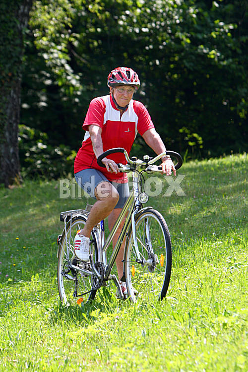 Beschreibung Senioren beim Radfahren [ (c) www.BilderBox.com, Erwin Wodicka, Siedlerzeile 3, A-4062 Thening, Tel. + 43 676 5103678.Verwendung nur gegen HONORAR, BELEG, URHEBERVERMERK nach AGBs auf...
