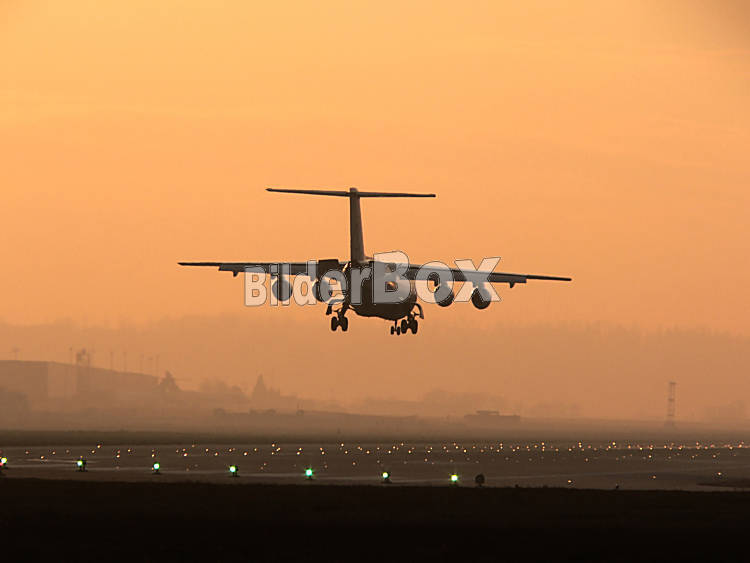 Beschreibung Flugzeug in der Daemmerung [ (c) www.BilderBox.com, Erwin Wodicka, Siedlerzeile 3, A-4062 Thening, Tel. + 43 676 5103678.Verwendung nur gegen HONORAR, BELEG,URHEBERVERMERK und den AGBs auf...