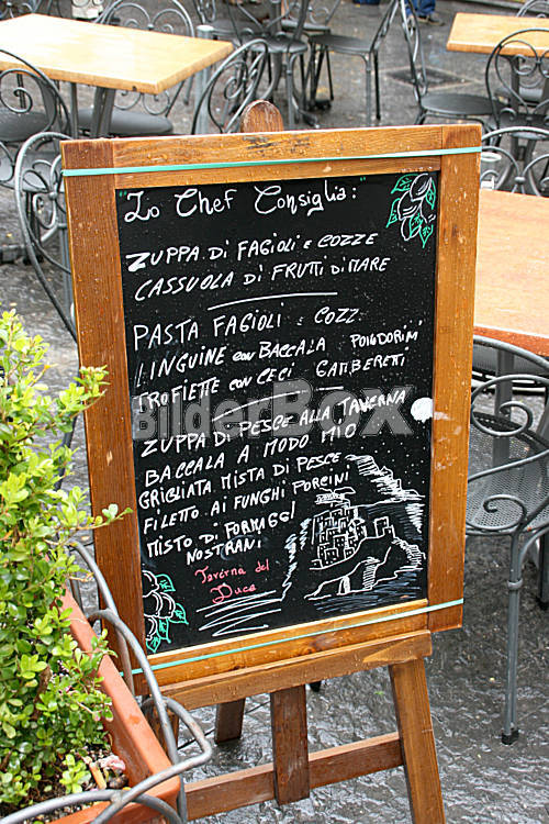 Beschreibung Italienische Speisekarte [ (c) www.BilderBox.com, Erwin Wodicka, Siedlerzeile 3, A-4062 Thening, Tel. + 43 676 5103678.Verwendung nur gegen HONORAR, BELEG, URHEBERVERMERK nach AGBs auf...