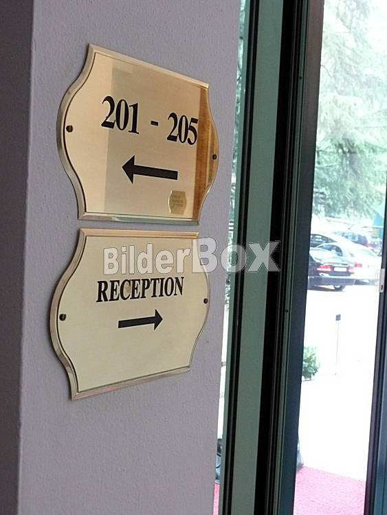 Beschreibung Hinweisschilder in einem Hotel [ (c) www.BilderBox.com, Erwin Wodicka, Siedlerzeile 3, A-4062 Thening, Tel. + 43 676 5103678.Verwendung nur gegen HONORAR, BELEG, URHEBERVERMERK nach AGBs auf...