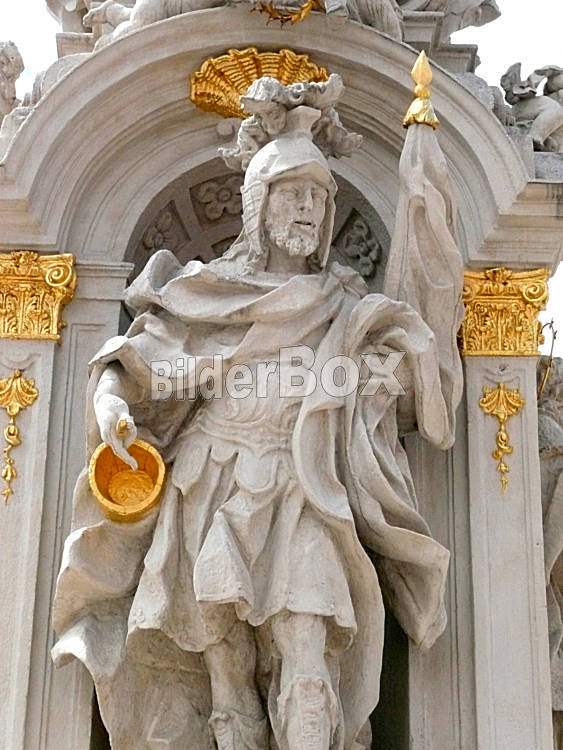 Oesterreich, Niederoesterreich, Weinviertel, Retz, Hauptplatz, Dreifaltigkeitssaeule, Hlg. Florian [ (c) www.BilderBox.com, Erwin Wodicka, Siedlerzeile 3, A-4062 Thening, Tel. + 43 676... |