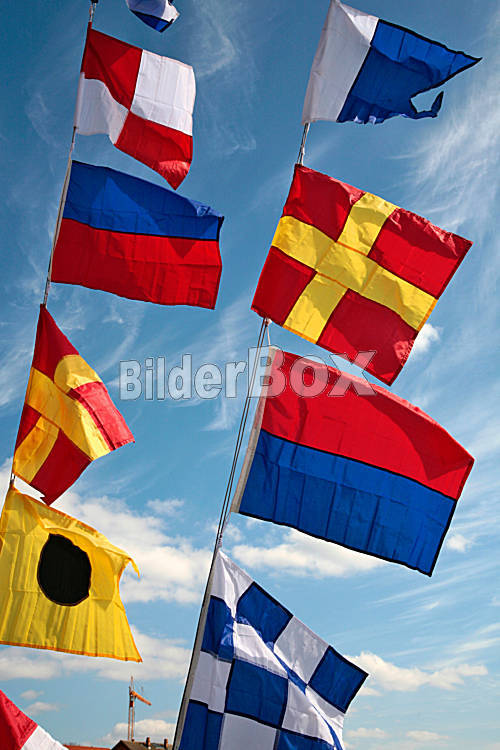 Beschreibung Bunte Fahnen im Wind [ (c) www.BilderBox.com, Erwin Wodicka, Siedlerzeile 3, A-4062 Thening, Tel. + 43 676 5103678.Verwendung nur gegen HONORAR, BELEG, URHEBERVERMERK nach AGBs auf bilderbox.com],...