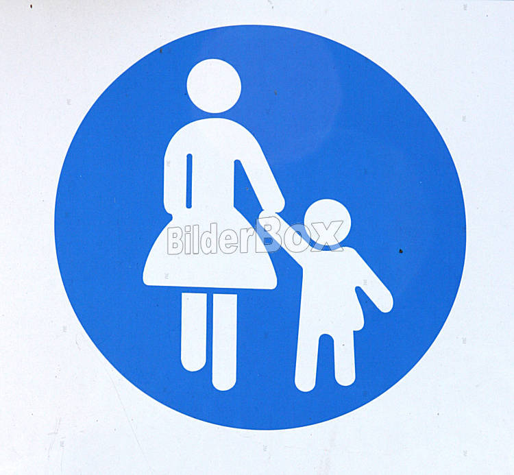 Beschreibung Fussgaengerschild mit Mutter und Kind [ NUR FUER REDAKTIONELLE VERWENDUNG! (c) www.BilderBox.com, Erwin Wodicka, Siedlerzeile 3, A-4062 Thening, Tel. + 43 676 5103678.Verwendung nur gegen HONORAR,...