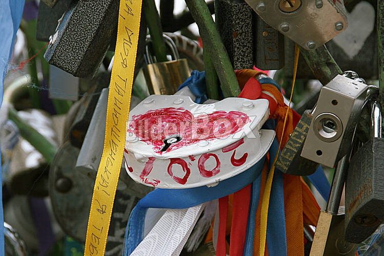Beschreibung Russland, Moskau, Brauchtum Brautpaar hängt ein Schloss an einen Baum [ NUR FUER REDAKTIONELLE VERWENDUNG! (c) www.BilderBox.com, Erwin Wodicka, Siedlerzeile 3, A-4062 Thening, Tel. + 43 676...