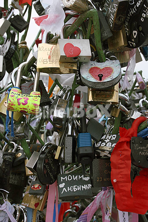 Beschreibung Russland, Moskau, Brauchtum Brautpaar hängt ein Schloss an einen Baum [ NUR FUER REDAKTIONELLE VERWENDUNG! (c) www.BilderBox.com, Erwin Wodicka, Siedlerzeile 3, A-4062 Thening, Tel. + 43 676...