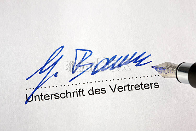 Beschreibung Unterschrift des Vertreters unter eine Kaufvertrags Dokument