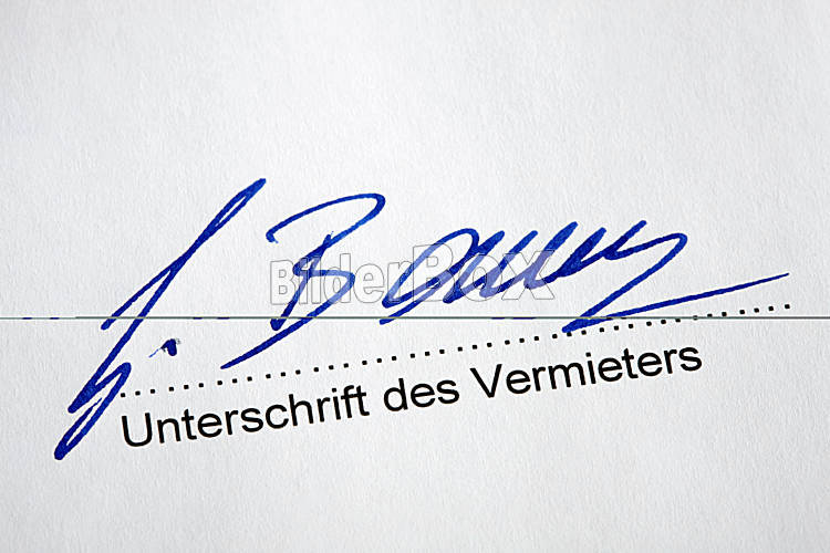 Beschreibung Unterschrift des Vermieters unter einen neuen Mietvertrag