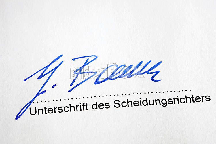 Beschreibung Unterschrift des Scheidungs richters unter ein Scheidungsurteil