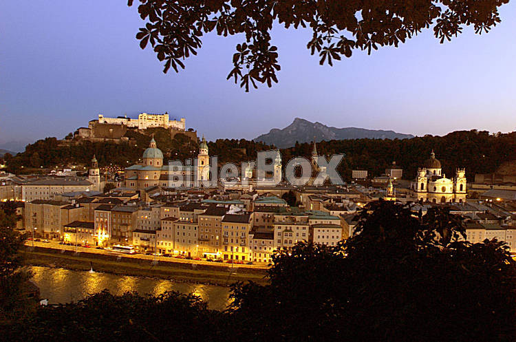 Beschreibung Oesterreich, Salzburg, Festung Hohensalzburg mit dem Salzburger Dom, der Altstadt Nachtaufnahme Copyright (2002) by BilderBox.com; Erwin Wodicka, A-4062 Breitbrunn. Tel.: 0043 676 5103 678....