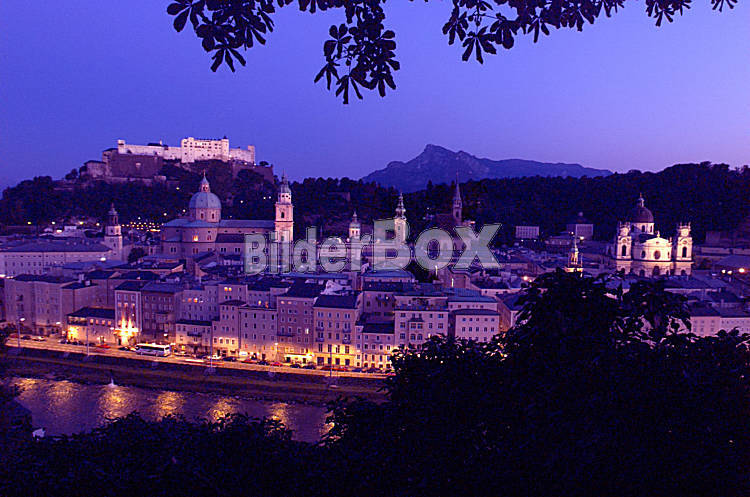 Beschreibung Oesterreich, Salzburg, Festung Hohensalzburg mit dem Salzburger Dom, der Altstadt Nachtaufnahme Copyright (2002) by BilderBox.com; Erwin Wodicka, A-4062 Breitbrunn. Tel.: 0043 676 5103 678....