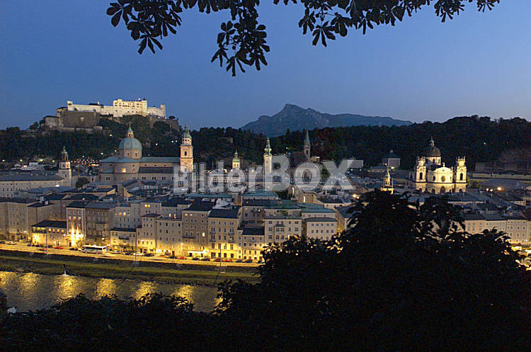 Beschreibung Oesterreich, Salzburg, Festung Hohensalzburg mit dem Salzburger Dom, der Altstadt Nachtaufnahme Copyright (2002) by BilderBox.com; Erwin Wodicka, A-4062 Breitbrunn. Tel.: 0043 676 5103 678....