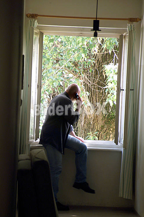Beschreibung Im Fluechtlingsheim / Asylantenheim, Asylant mit Handy Copyright (2002) by BilderBox.com; Erwin Wodicka, A-4062 Breitbrunn. Tel.: 0043 676 5103 678. Veroeffentlichung nur nach unseren AGBs:...