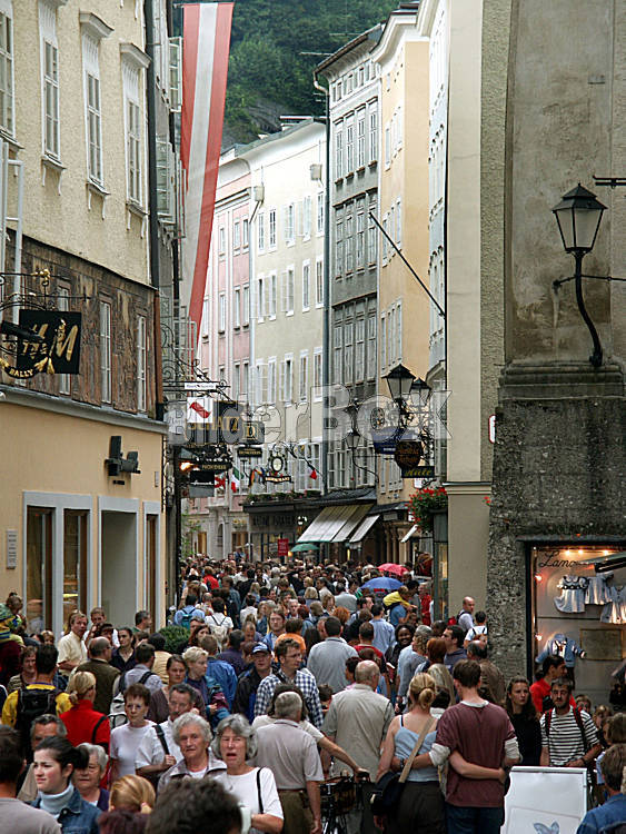 Beschreibung Oesterreich, Salzburg, Getreidegasse Copyright (2002) by BilderBox.com; Erwin Wodicka, A-4062 Breitbrunn. Tel.: 0043 676 5103 678. Veroeffentlichung nur nach unseren AGBs:...