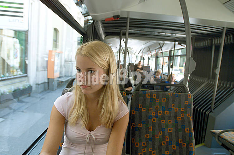 Beschreibung Teenager faehrt in einem Linienbus Copyright (2002) by BilderBox.com; Erwin Wodicka, A-4062 Breitbrunn. Tel.: 0043 676 5103 678. Veroeffentlichung nur nach unseren AGBs:...