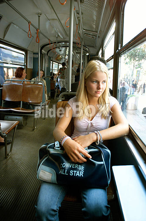 Beschreibung Teenager in einer Strassenbahn Copyright (2002) by BilderBox.com; Erwin Wodicka, A-4062 Breitbrunn. Tel.: 0043 676 5103 678. Veroeffentlichung nur nach unseren AGBs: www.bilderbox.com/agb.html....