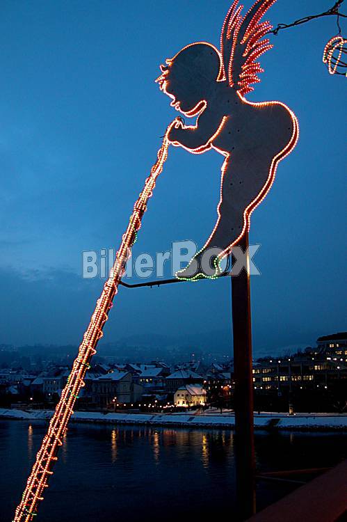 Beschreibung Weihnachtsbeleuchtung auf einer Einkaufsstrasse; Linz, AUT, 24.12.2002; Weihnachten, Religion, Weihnachtsbeleuchtungen, Einkaufsstrassen, Lichterketten, Weihnachtsgeschäft, Weihnachtsgeschaeft,...