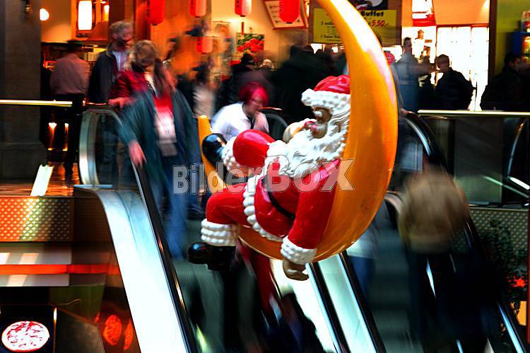 Weihnachtsmann in einem Einkaufszentrum; Linz, AUT, 24.12.2002; Weihnachten, Religion, Weihnachtsmann, Weihnachtsmännern, Weihnachtsmaennern, Einkaufsstrassen, Weihnachtsgeschäft,... |