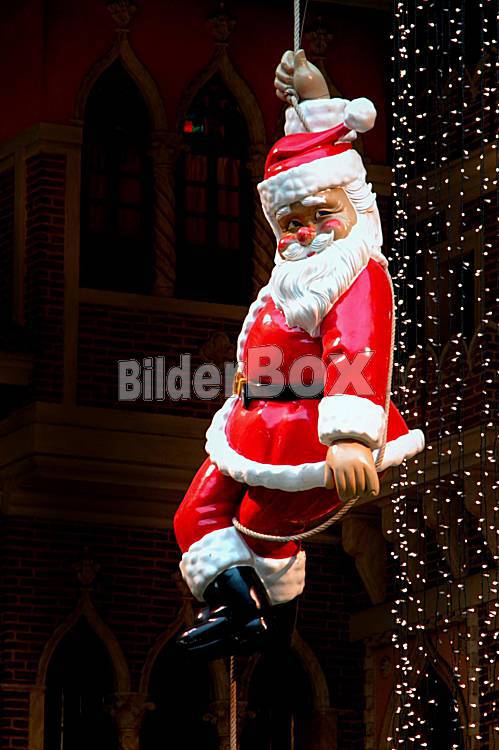 Beschreibung Weihnachtsmann in einem Einkaufszentrum; Linz, AUT, 24.12.2002; Weihnachten, Religion, Weihnachtsmann, Weihnachtsmännern, Weihnachtsmaennern, Einkaufsstrassen, Weihnachtsgeschäft,...
