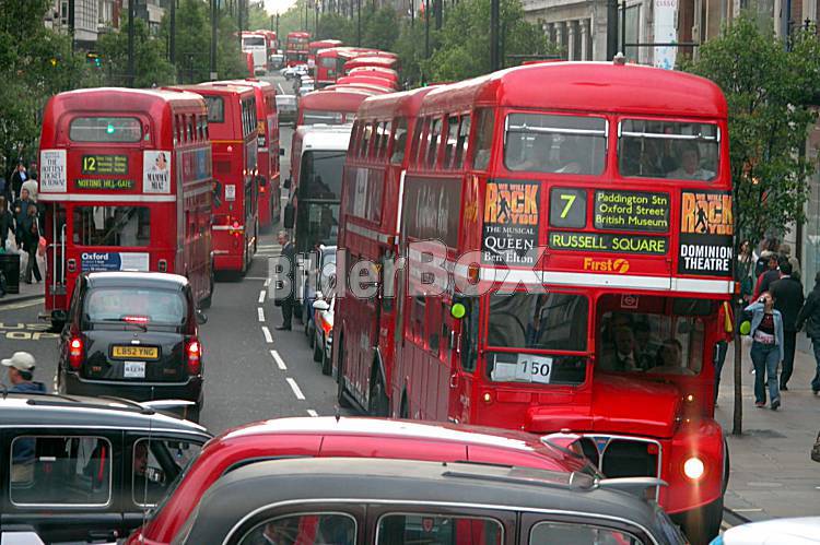 Beschreibung Grossbritannien, England, London, Doppeldeckerbusse in der Oxfordstreet und Taxis [ (c) www.BilderBox.com, Erwin Wodicka, A-4063 Breitbrunn, Tel. +43 676 5103 678. Verwendung nur gegen HONORAR,...