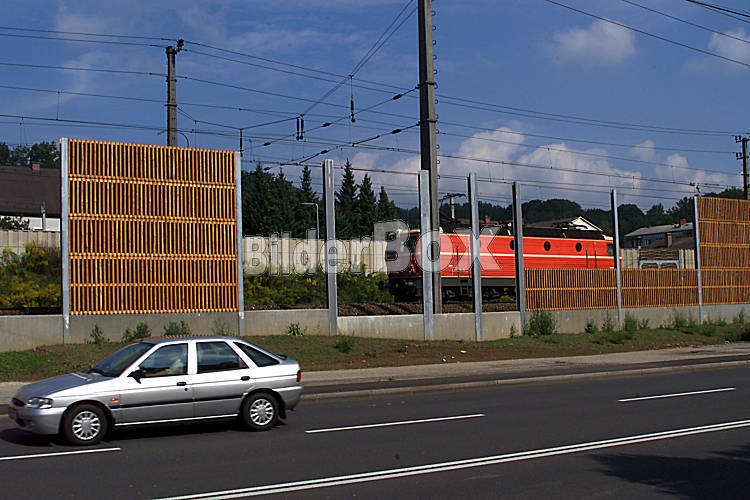 Laermschutzwand entlang von Eisenbahnschienen