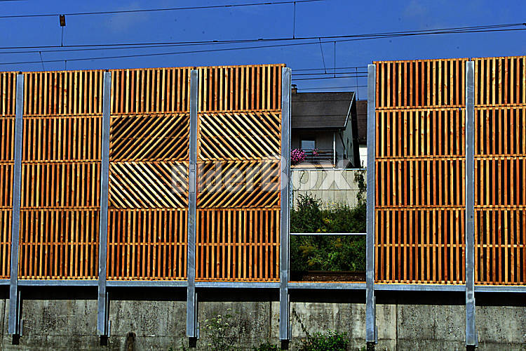 Beschreibung Laermschutzwand entlang von Eisenbahnschienen Verkehr, Eisenbahn, Schienenverkehr, , Zug, Bundesbahnen, Öffentlicher Verkehr, Oeffentlicher Verkehr, Nahverkehr, Gleise, Lokomotiven,...
