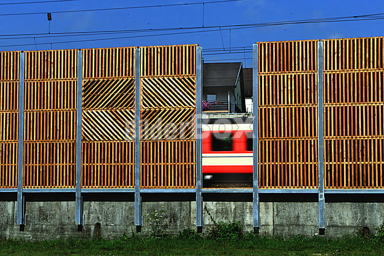 Laermschutzwand entlang von Eisenbahnschienen