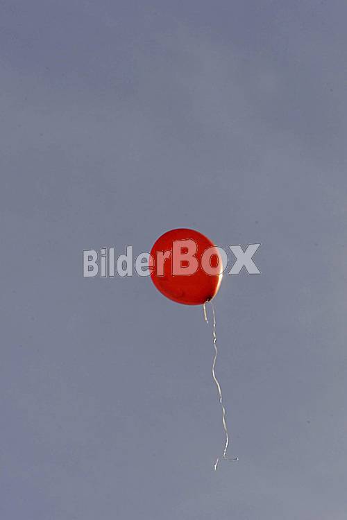 Roter Luftballon fliegt in den blauen Himmel davon.
