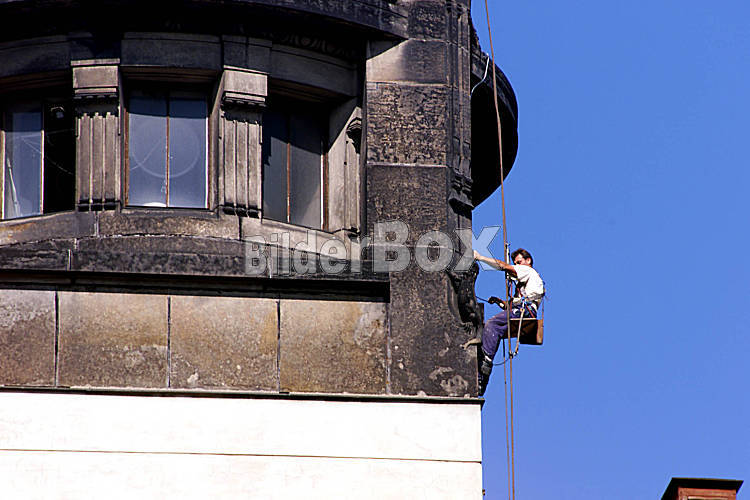 Beschreibung Arbeiter an einer Fassade Arbeit,Menschen,Fassade,Arbeiter, Copyright by BilderBox- Erwin Wodicka,A-4062 Thening; Oktober 1999