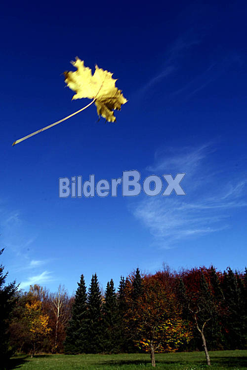 Beschreibung Fallendes Blatt vor blauem Himmel...