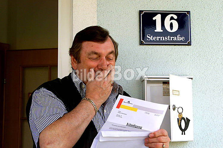 Menschen,Mann,Kündigung,Kuendigung,Arbeitslos,Senioren,Pensionisten,Arbeit,Blauer Briefkasten,Postkasten,Kündigen,Kuendigen,Verzweifelt,Verzweiflung,Fassungslos,Schlechte... |