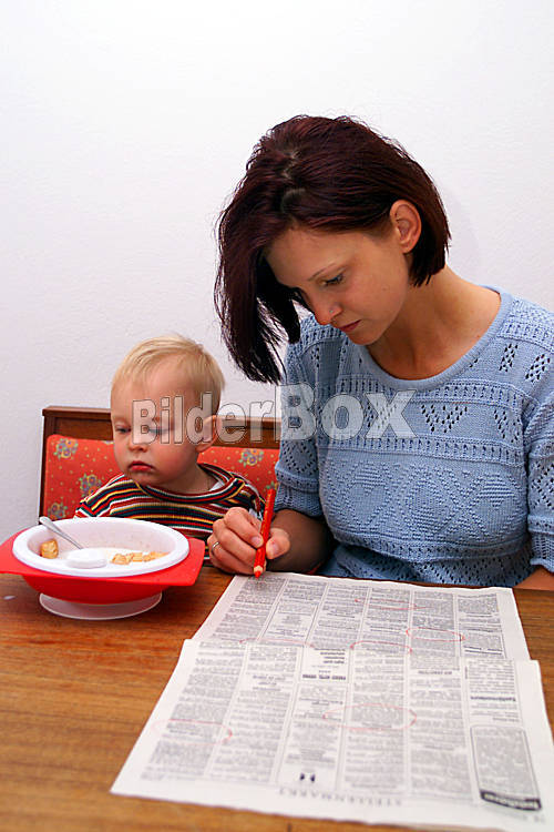 Beschreibung Frau liest in Zeitungsinseraten....