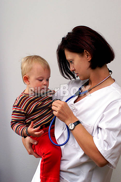 Beschreibung Aerztin mit Stetoskop und Kind...