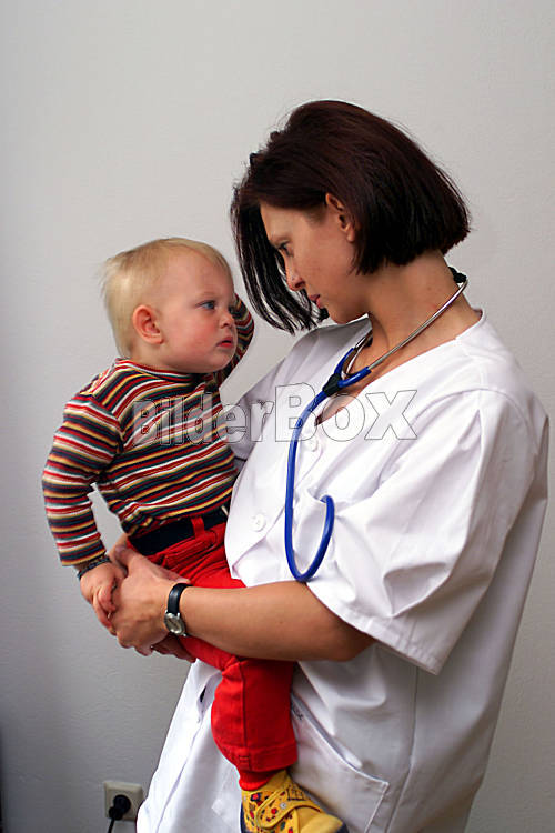 Beschreibung Aerztin mit Stetoskop und Kind...