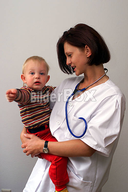 Beschreibung Aerztin mit Stetoskop und Kind...