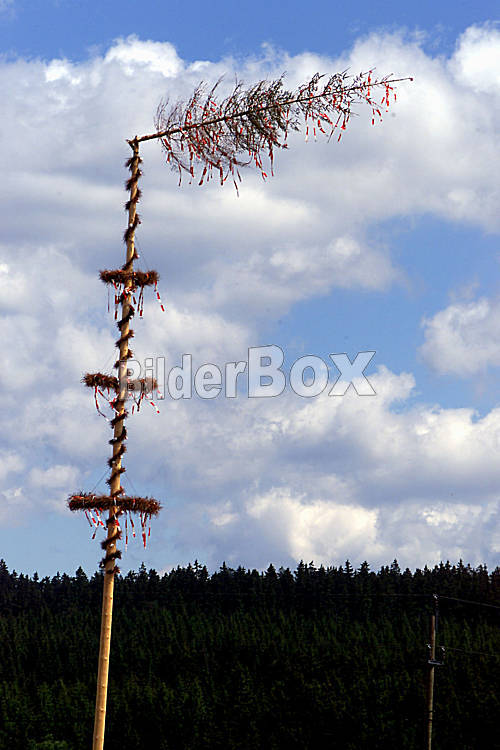Vom Wind abgeknickter Maibaum