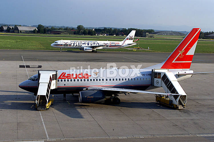 Beschreibung Flugzeug der Lauda Air auf dem Flughafen Linz in Oesterr. Oesterreich,Flughafen,Airport,Fluglinien,Airlines,Österreich,Lauda,Laudaair,Lauda Air Copyright (2000) by BilderBox- Erwin Wodicka;...