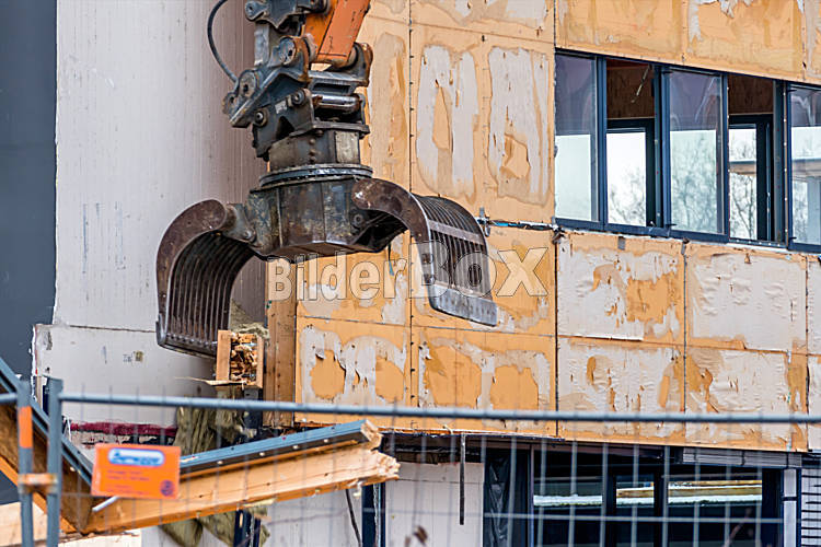 Beschreibung Ein altes Bürogebäude wird abgreissen um einem Neubau Platz zu machen