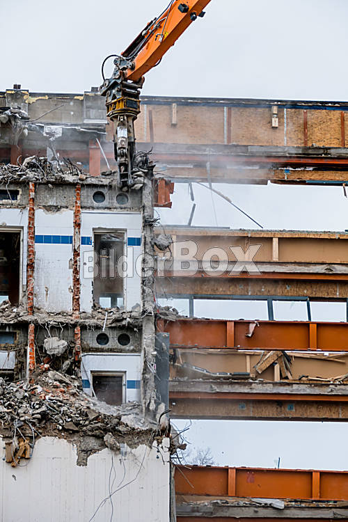 Beschreibung Ein älteres Bürohaus wird abgerissen um für einen Neubau Platz zu machen