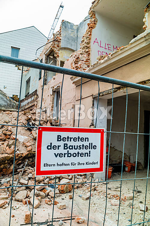 Beschreibung Ein altes Haus wird abgerissen um Platz für den Neubau von Wohnungen zu bekommen. Stadt Erneuerung und Reonovierung