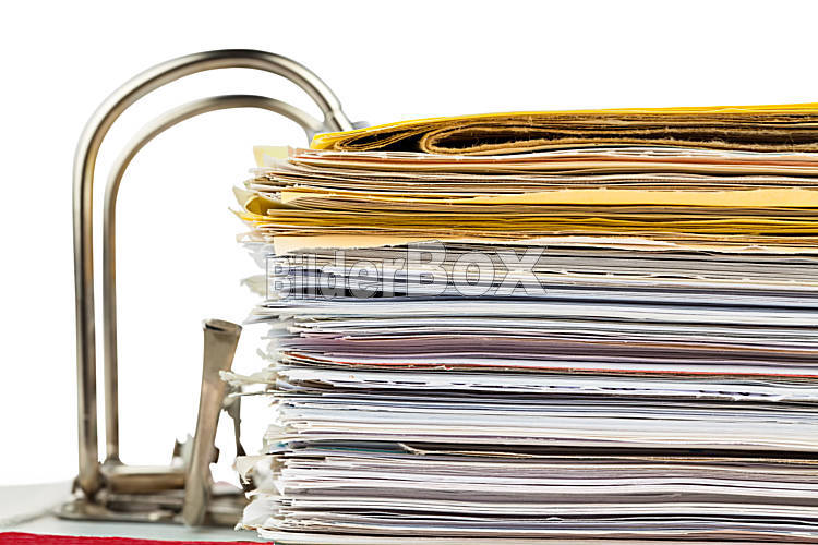Beschreibung Ein Aktenordner mit Schriftstücken und Dokumenten. Aufbewahrung von Verträgen.