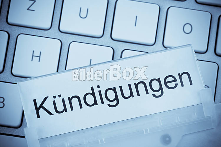Beschreibung Eine Mappe für Akten im Hängeregister vor einer Computertastatur zum Thema: Kündigungen