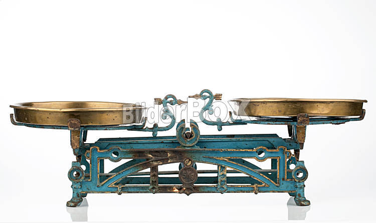 Beschreibung Alte Waage, Symbolfoto für Gerechtigkeit, Gewicht und Massevergleich