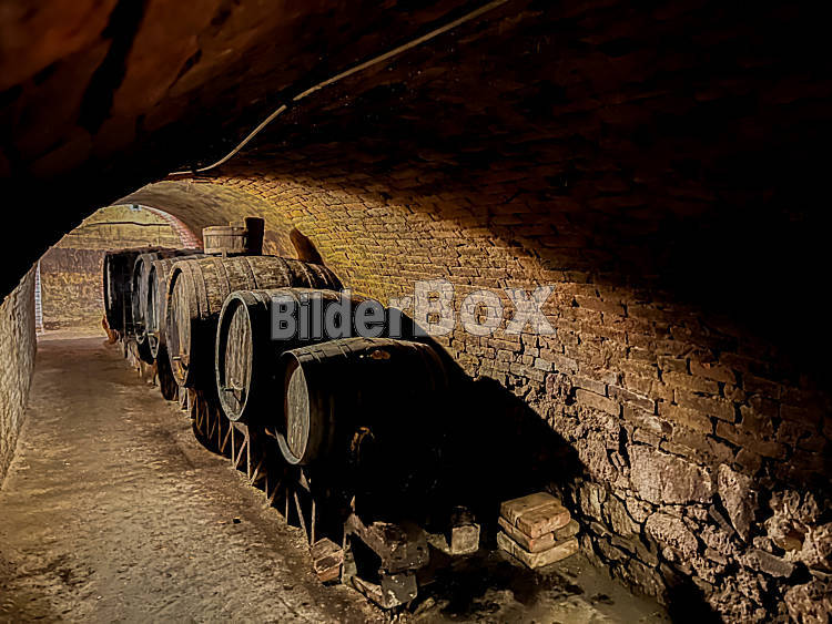 Beschreibung Holzfässer in einam alten antiken Weinjeller. Romantik