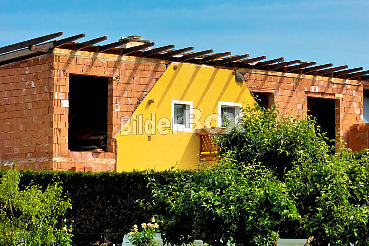 Beschreibung Ein altes Haus wird durch einen ZUbau modernisiert und saniert.