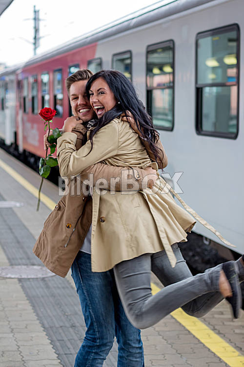 Beschreibung Parr bei der Ankunft oder Verabschiedeung auf einem Bahnsteig in einem Bahnhof