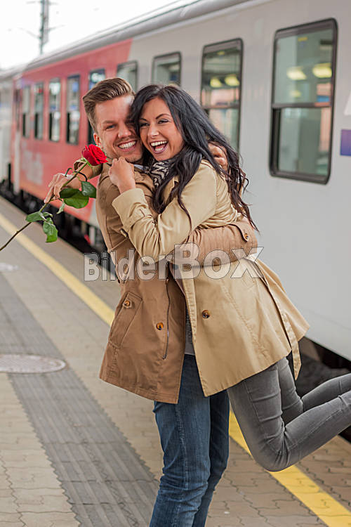 Beschreibung Parr bei der Ankunft oder Verabschiedeung auf einem Bahnsteig in einem Bahnhof